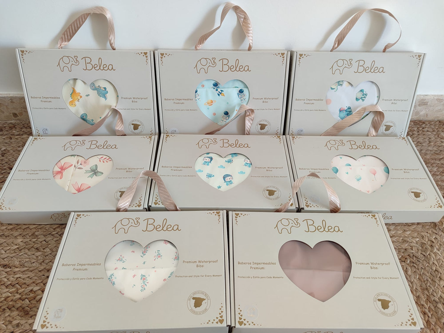 En Belea cuidamos cada detalle para ofrecerte no solo baberos de calidad, sino también una presentación única. Nuestro exclusivo packaging está diseñado para impresionar, con un toque elegante y lleno de encanto que lo convierte en el regalo perfecto.