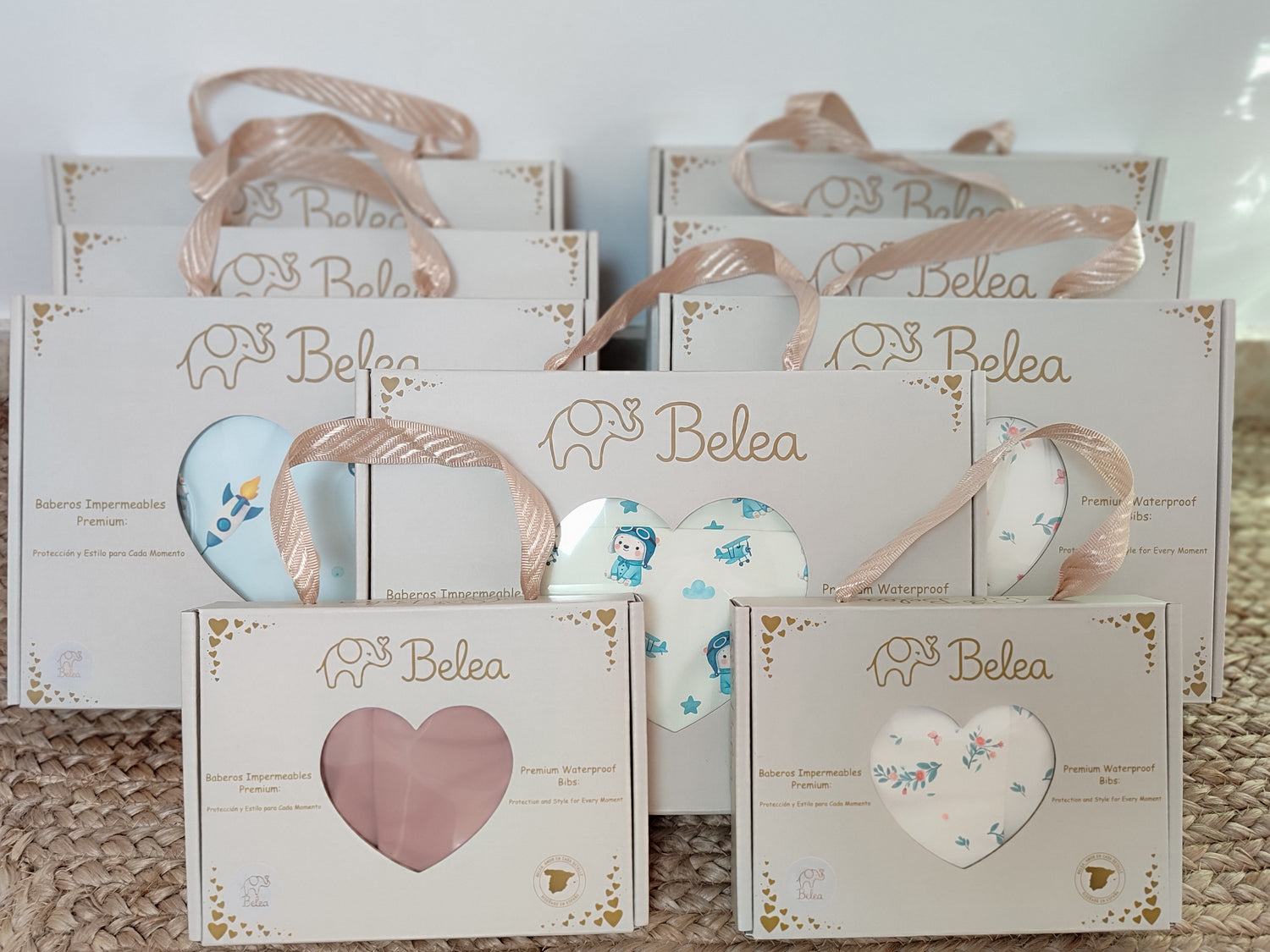 En Belea cuidamos cada detalle para ofrecerte no solo baberos de calidad, sino también una presentación única. Nuestro exclusivo packaging está diseñado para impresionar, con un toque elegante y lleno de encanto que lo convierte en el regalo perfecto.