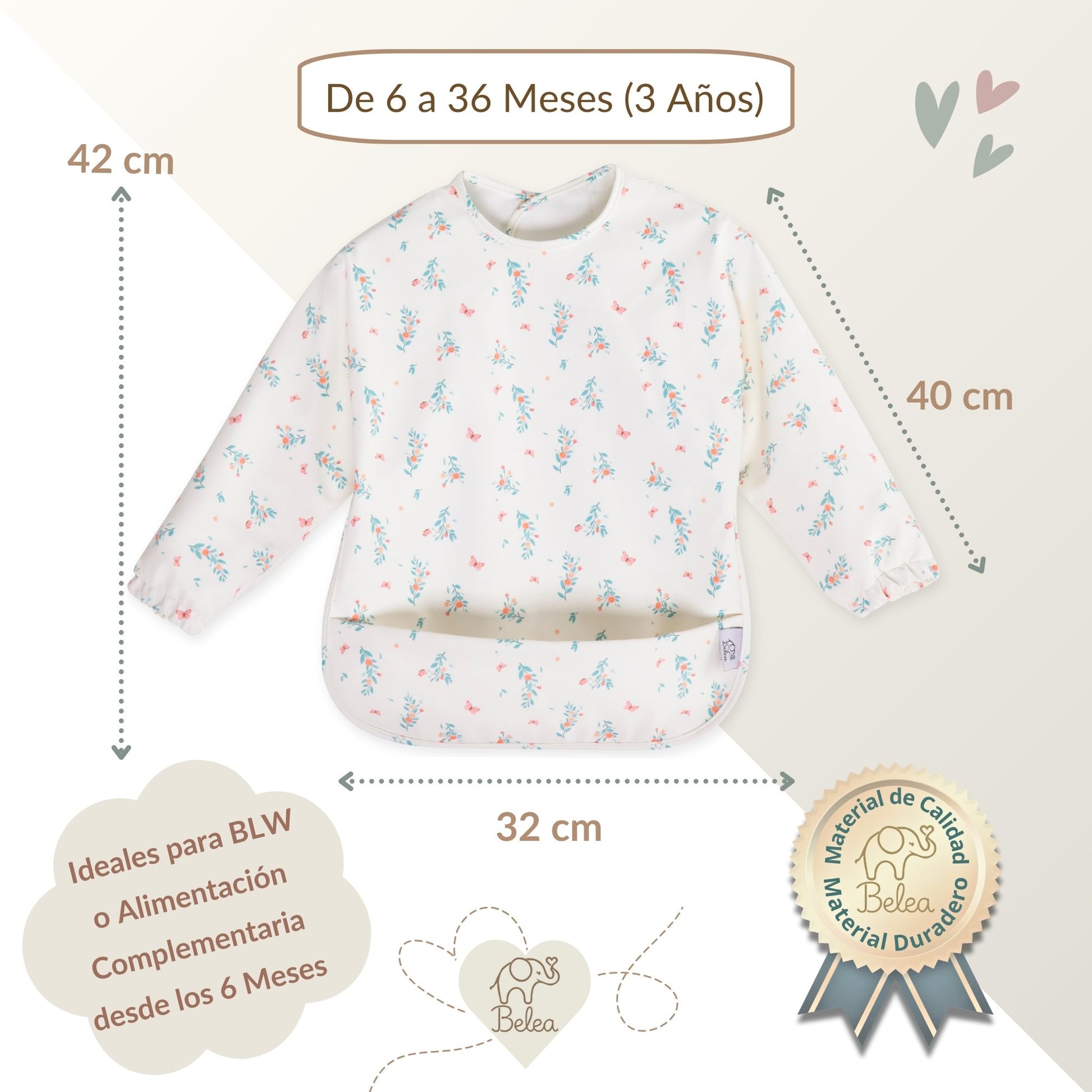 ⇨ IDEAL PARA BEBÉS ENTRE 6 a 36 MESES (3 años): El babero con mangas es ideal para bebés de 6 a 36 meses, mientras que el babero sin mangas se adapta hasta los 5 años, brindando una protección prolongada a medida que tu pequeño crece.