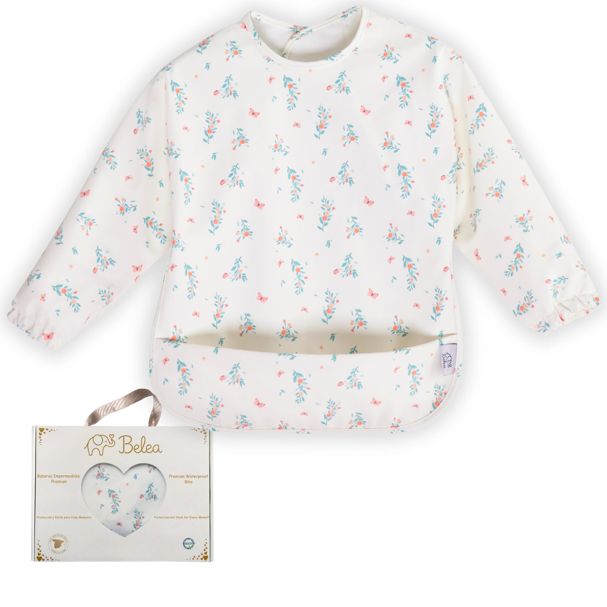 Nuestro babero impermeable de manga larga protege con suavidad sin renunciar al diseño.