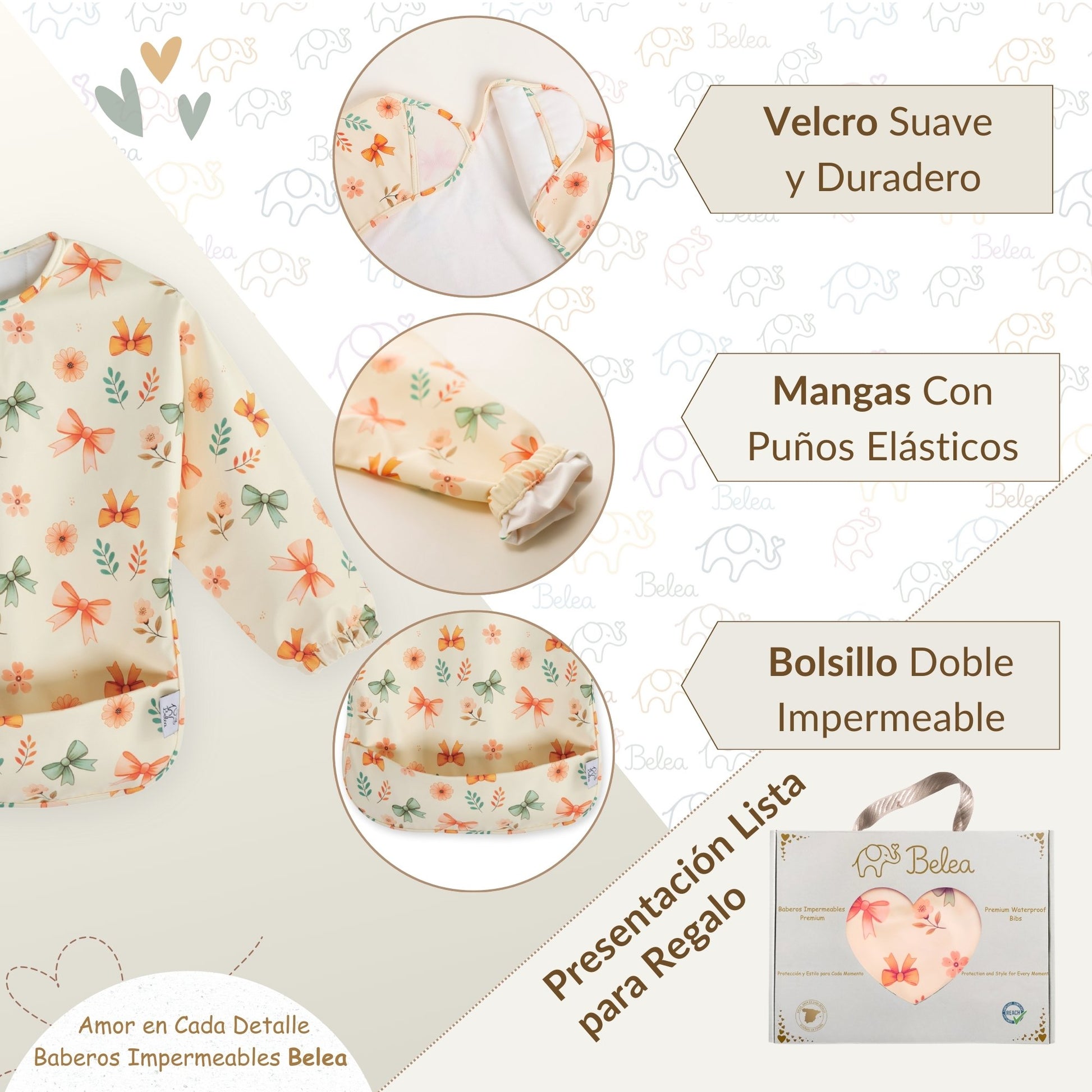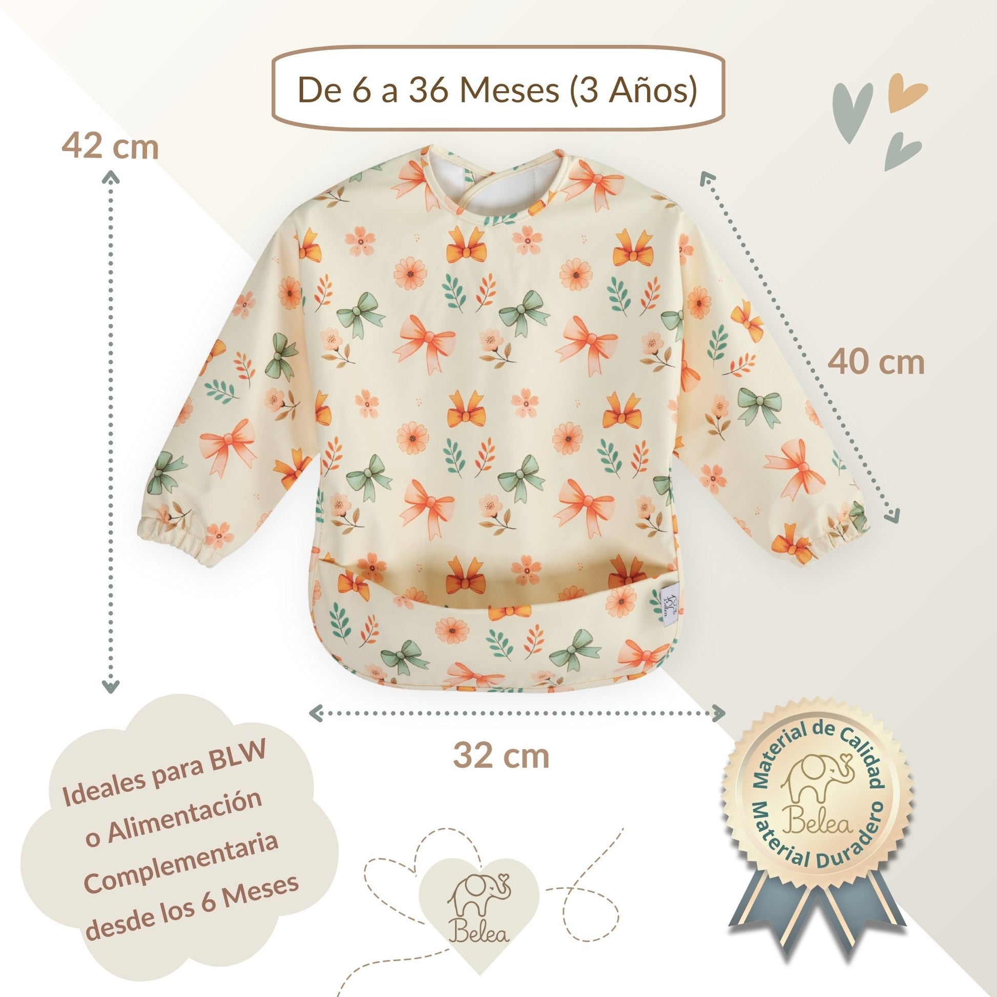 ⇨ IDEAL PARA BEBÉS ENTRE 6 a 36 MESES (3 años): El babero con mangas es ideal para bebés de 6 a 36 meses, mientras que el babero sin mangas se adapta hasta los 5 años, brindando una protección prolongada a medida que tu pequeño crece.