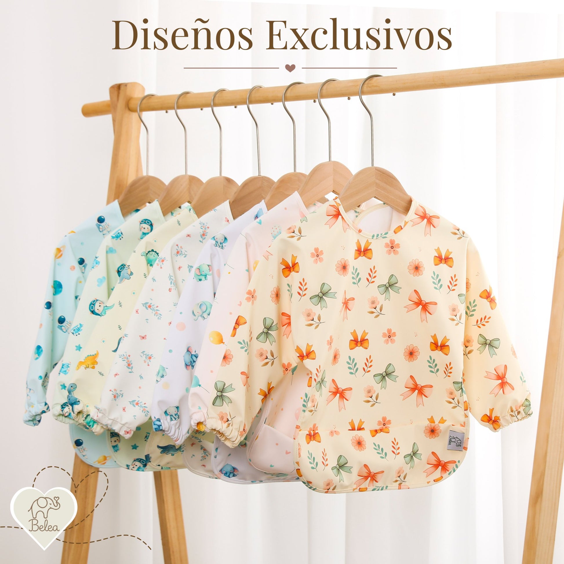 ⇨ DISEÑOS EXCLUSIVOS: Cada babero está diseñado exclusivamente por Belea, ofreciendo un estilo único que combina funcionalidad y moda. Estos baberos para bebé no solo son prácticos, sino que también añaden un toque especial a cada comida.