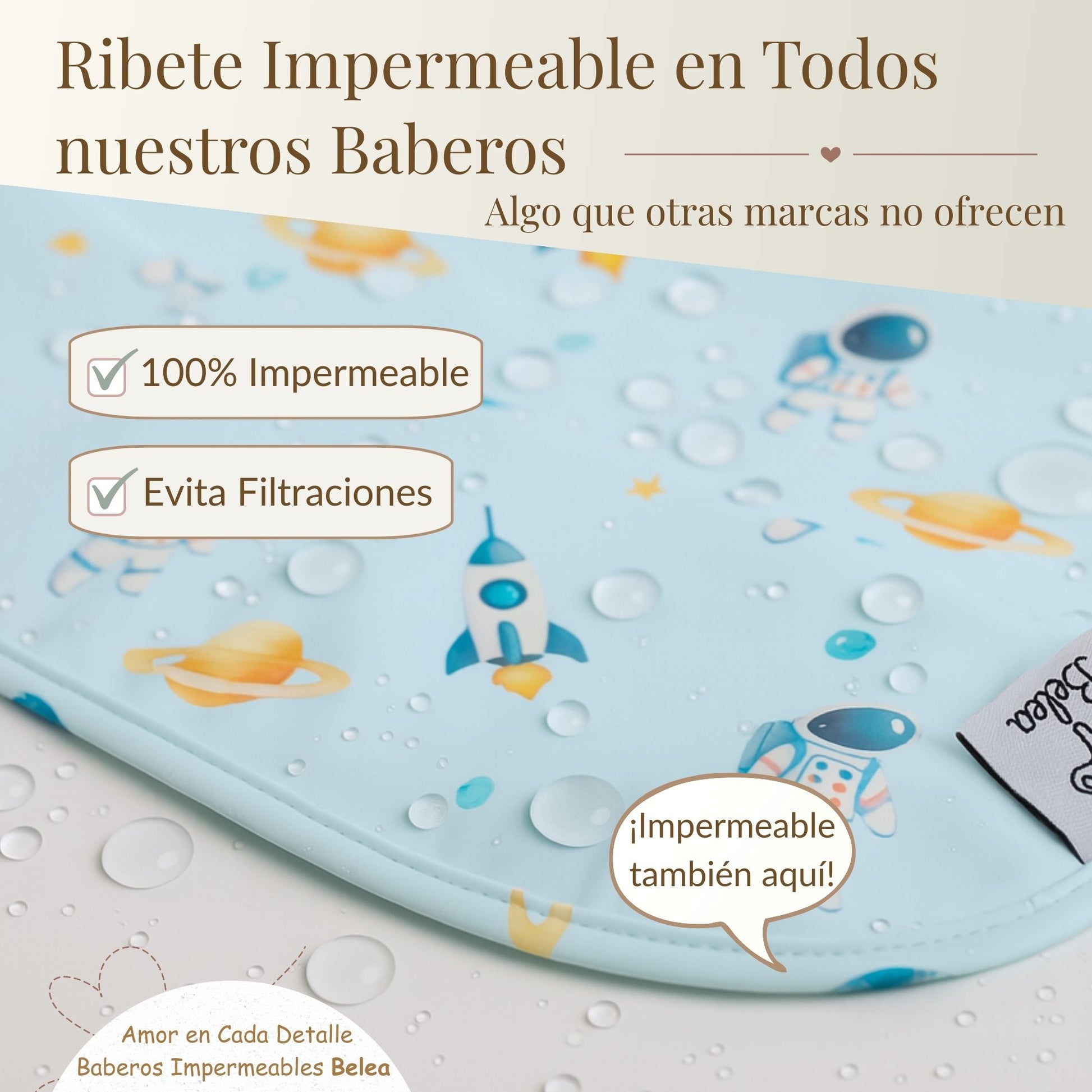 Nuestros Baberos Impermables están diseñados para adaptarse a cualquier momento del día. Ya sea durante las comidas en casa o al aire libre, o en actividades creativas, estos baberos mantienen la ropa de tu bebé impecable. Perfectos para el método BLW (Baby Led Weaning).La calidad del material garantiza la resistencia al uso diario sin deteriorarse.