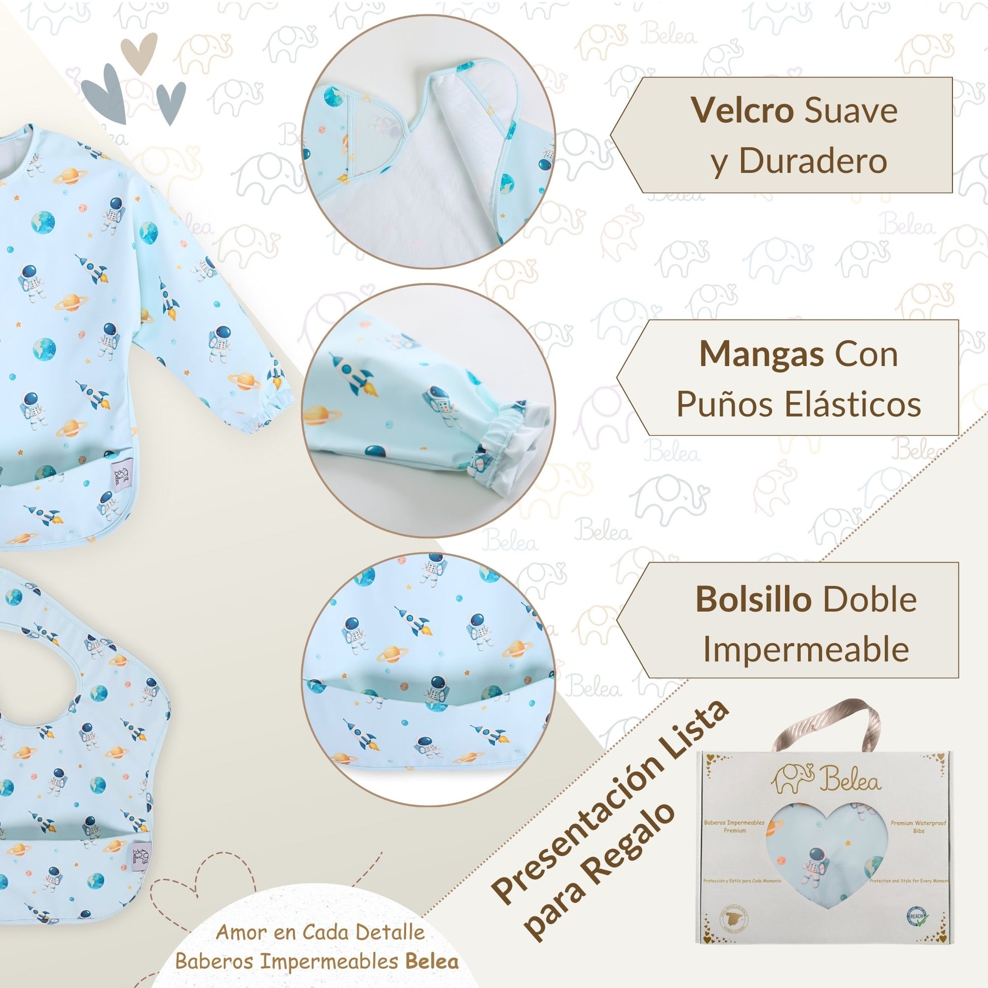 Pack Babero Manga Larga + Babero sin Mangas – Astronauta | BeleaKids