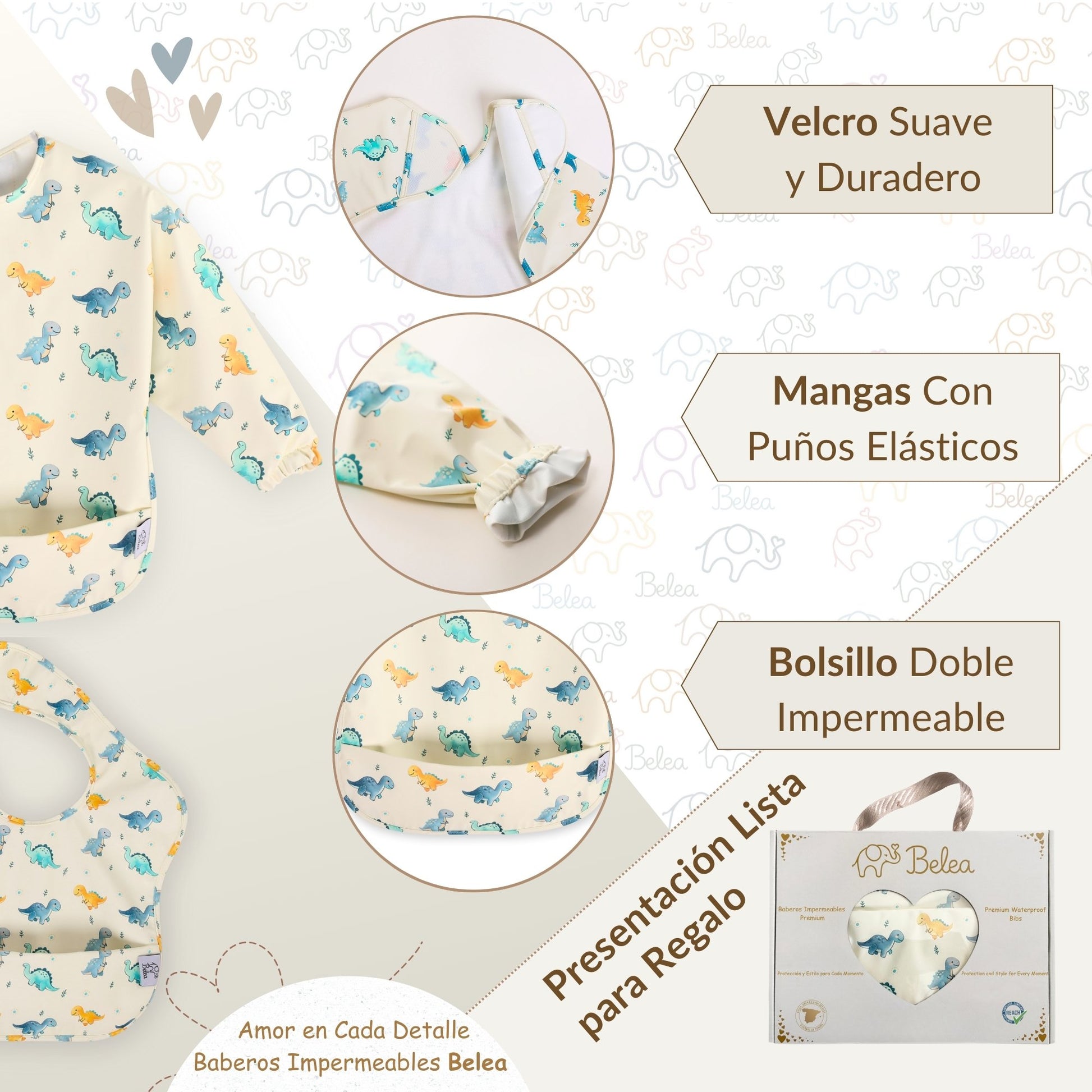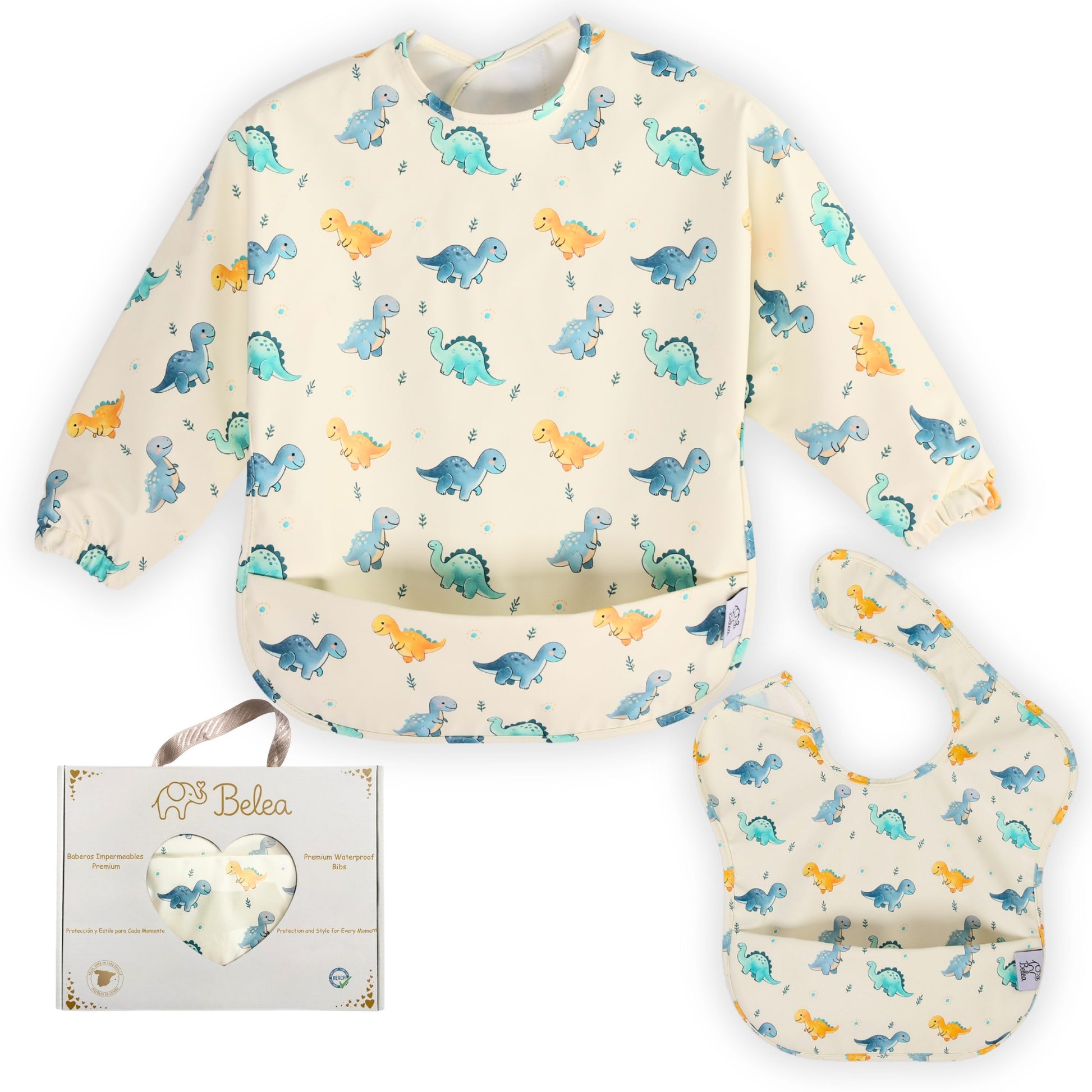 Pack Babero Manga Larga + Babero sin Mangas – Dinosaurios | BeleaKids