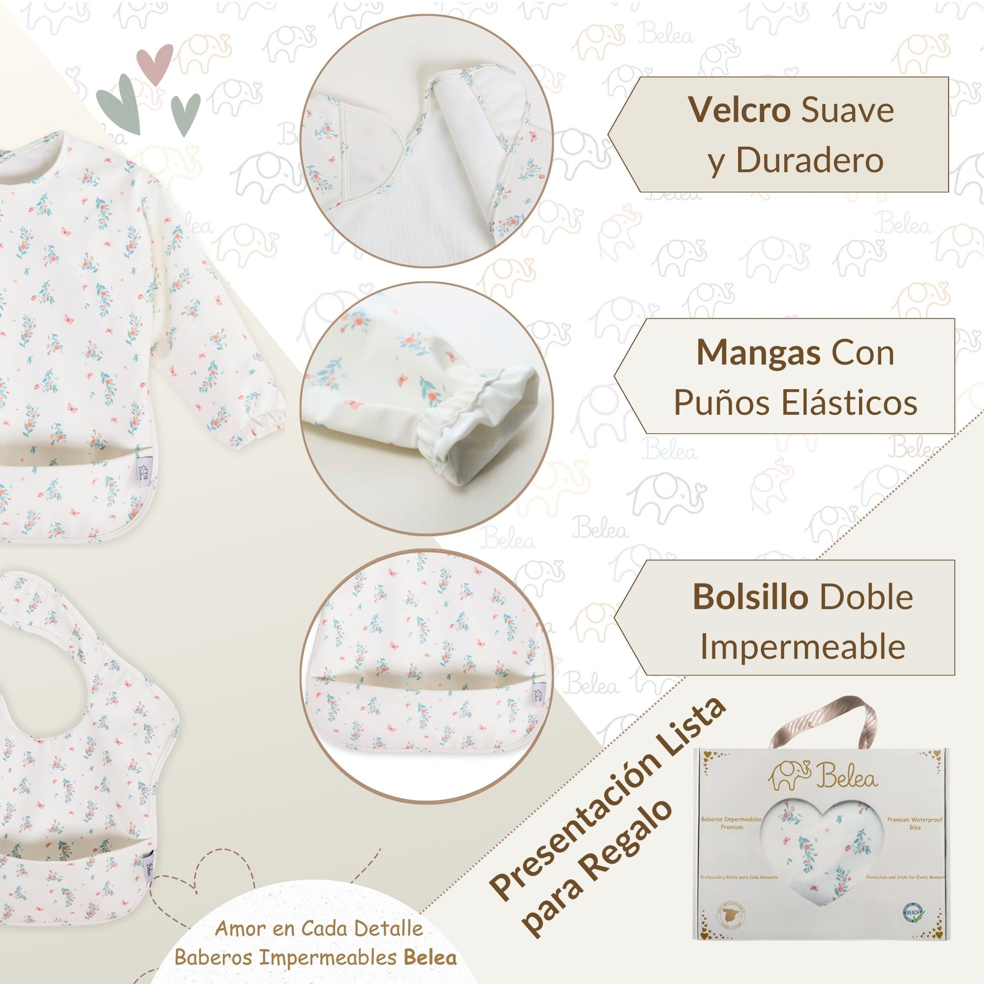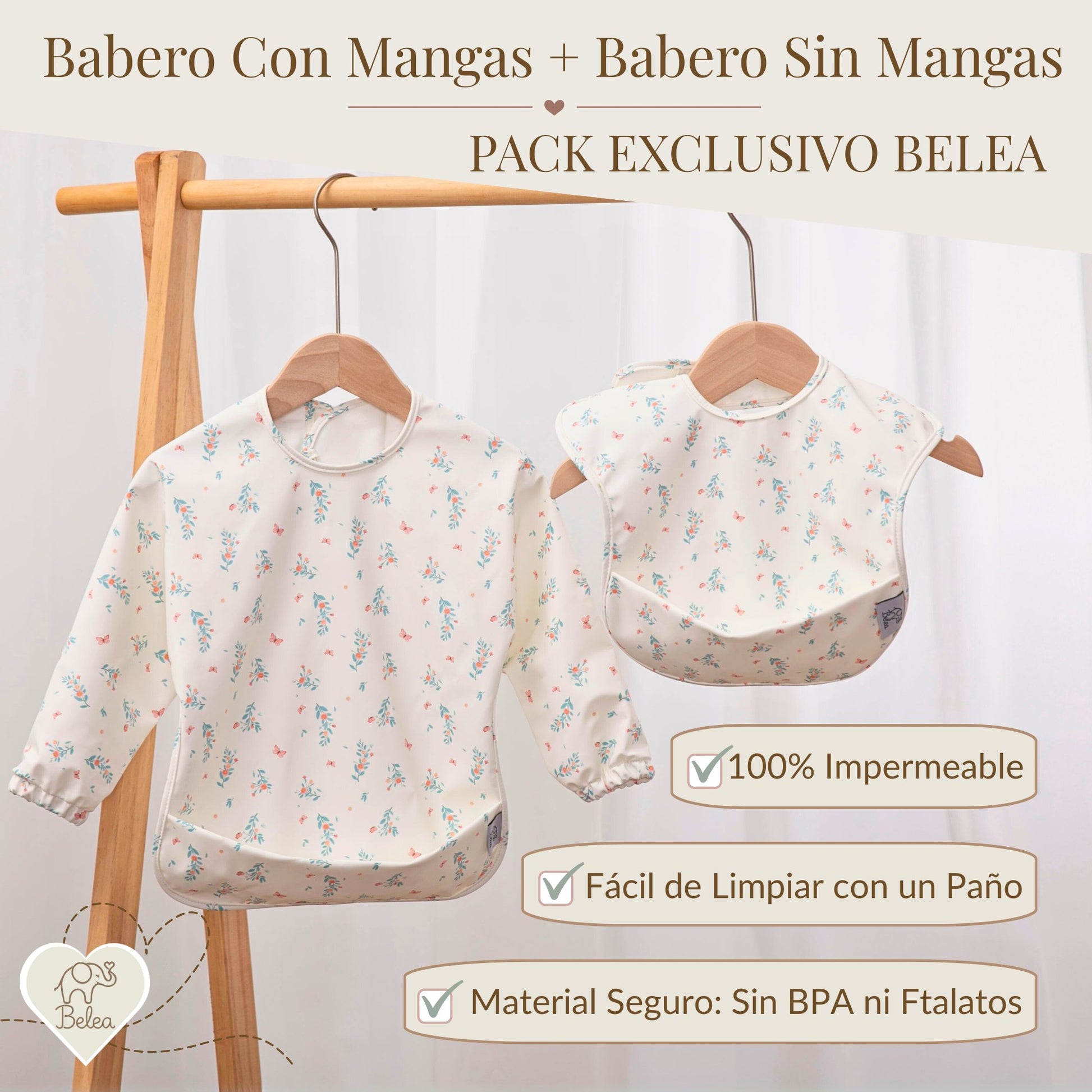Pack Babero Manga Larga + Babero sin Mangas – Flores | BeleaKids