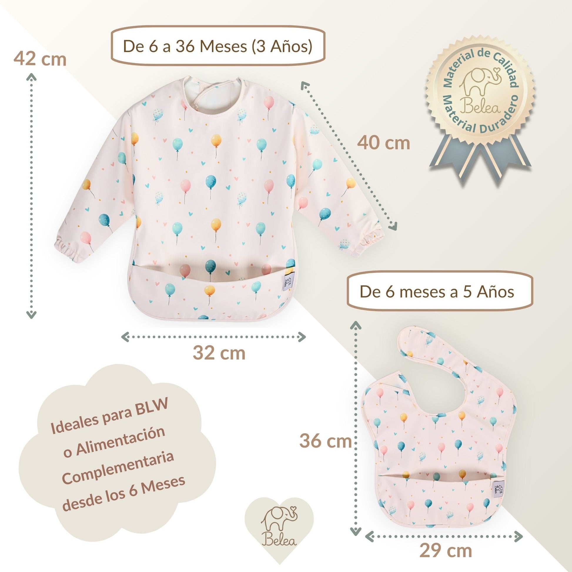 ⇨ IDEAL PARA BEBÉS ENTRE 6 a 36 MESES (3 años): El babero con mangas es ideal para bebés de 6 a 36 meses, mientras que el babero sin mangas se adapta hasta los 5 años, brindando una protección prolongada a medida que tu pequeño crece.