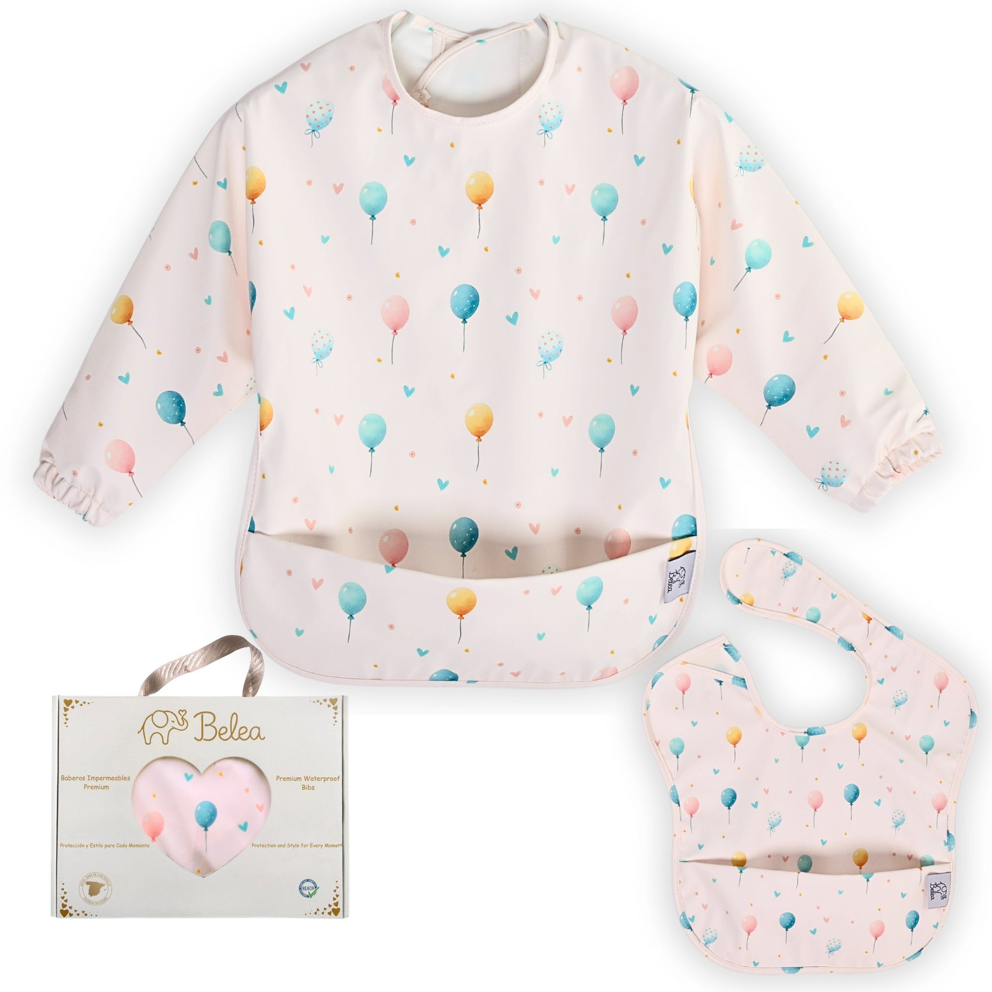 Pack Babero Manga Larga + Babero sin Mangas – Globos | BeleaKids