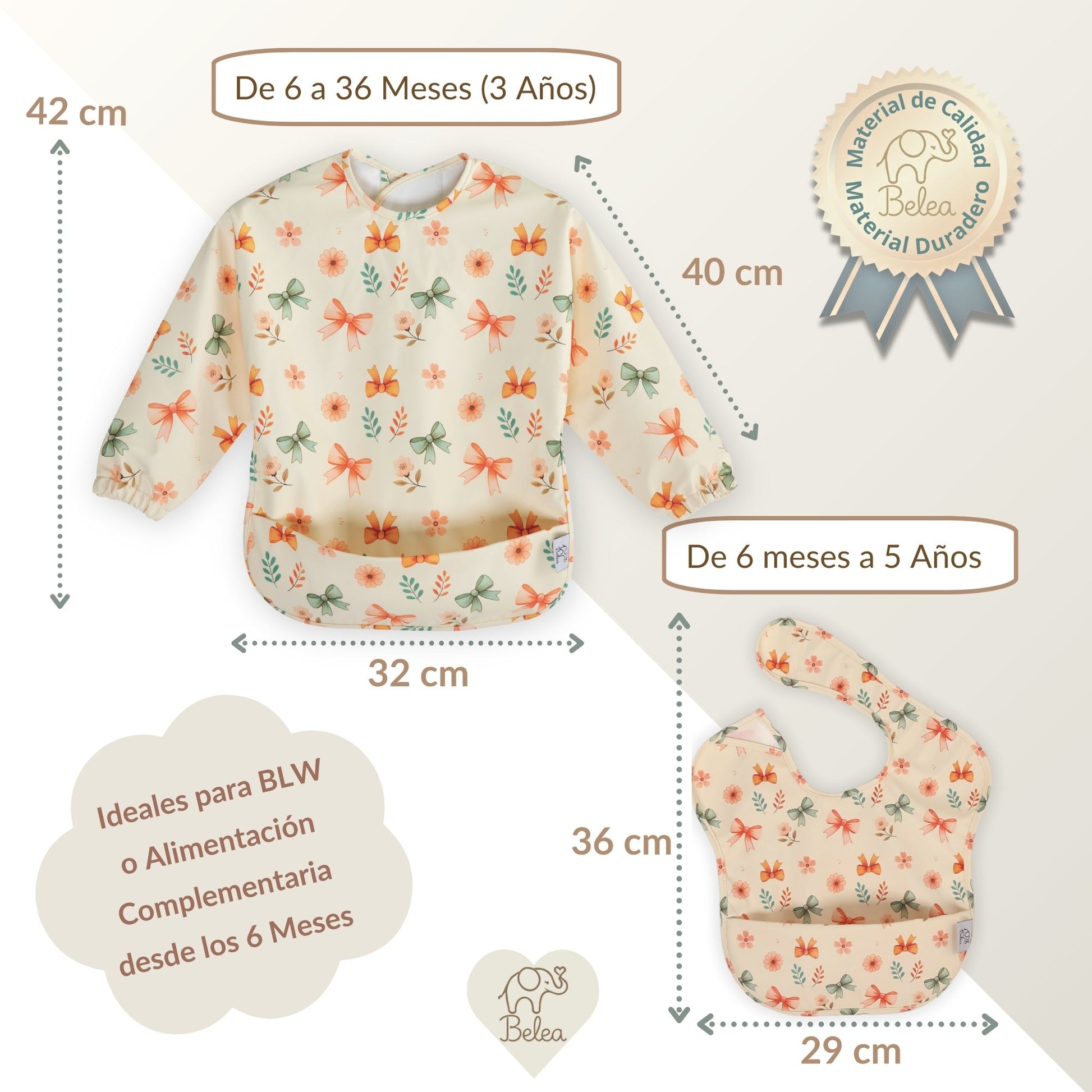⇨ IDEAL PARA BEBÉS ENTRE 6 a 36 MESES (3 años): El babero con mangas es ideal para bebés de 6 a 36 meses, mientras que el babero sin mangas se adapta hasta los 5 años, brindando una protección prolongada a medida que tu pequeño crece.