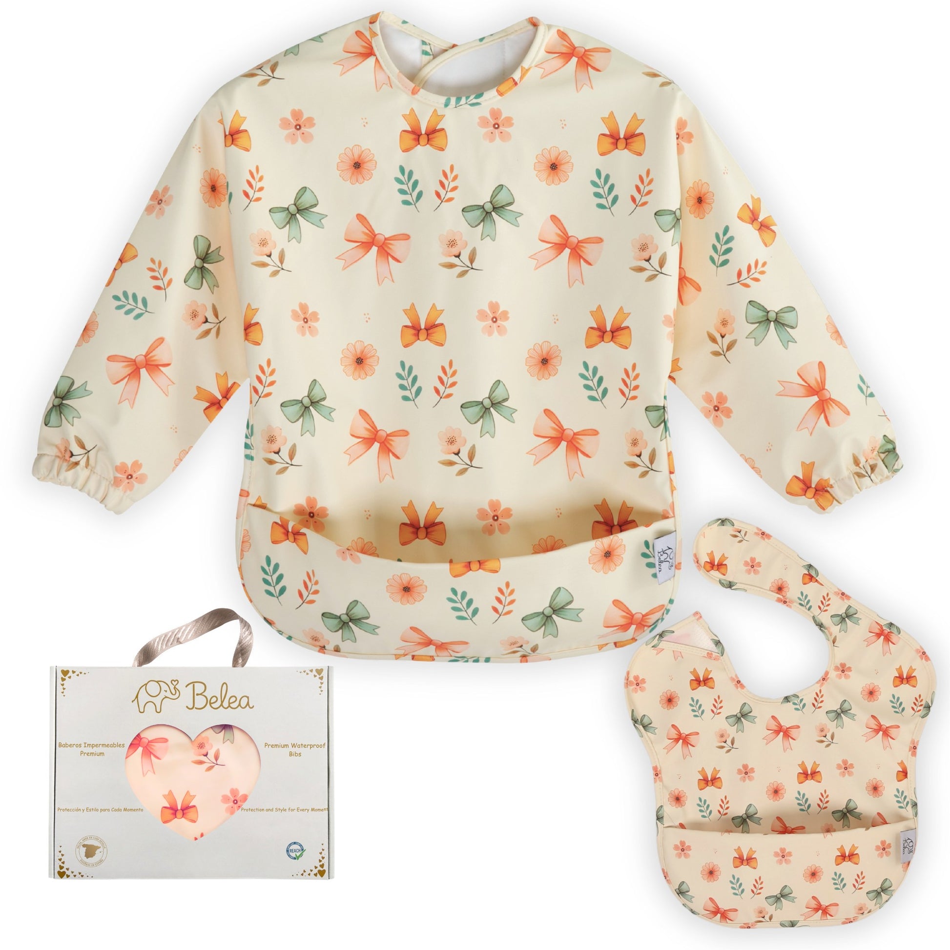 Pack Babero Manga Larga + Babero sin Mangas – Lazos | BeleaKids