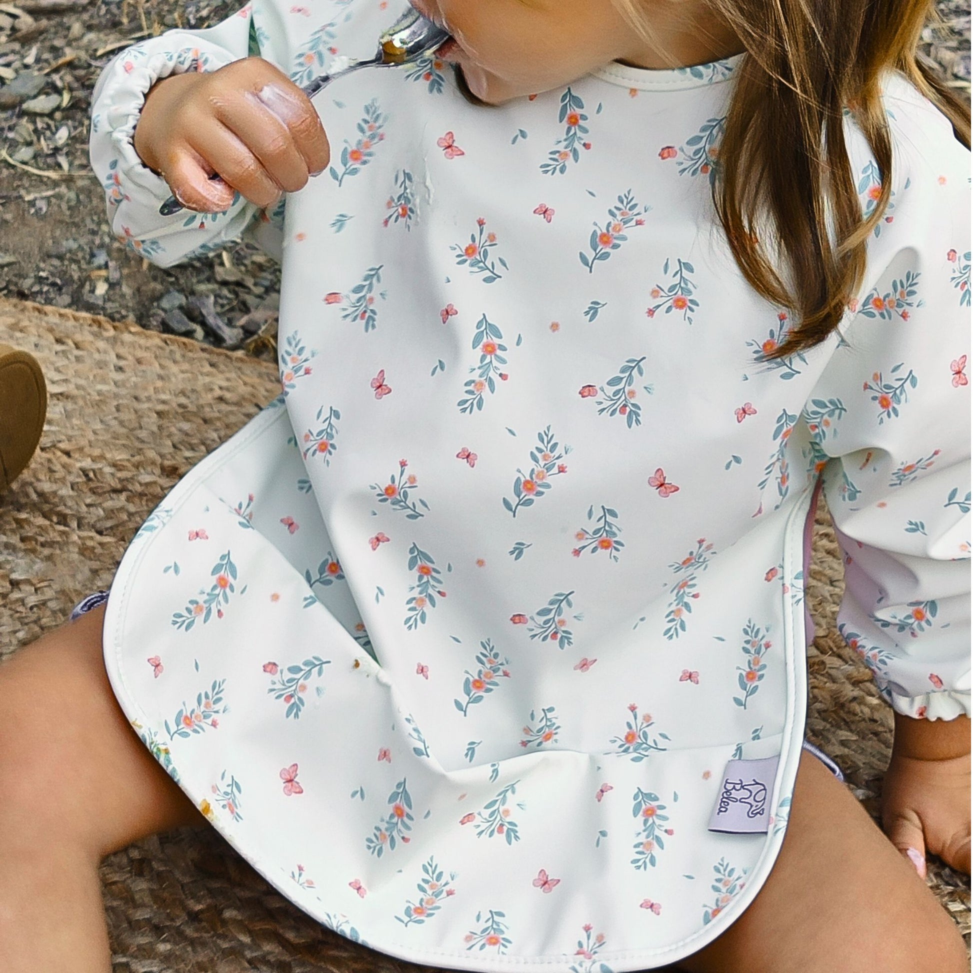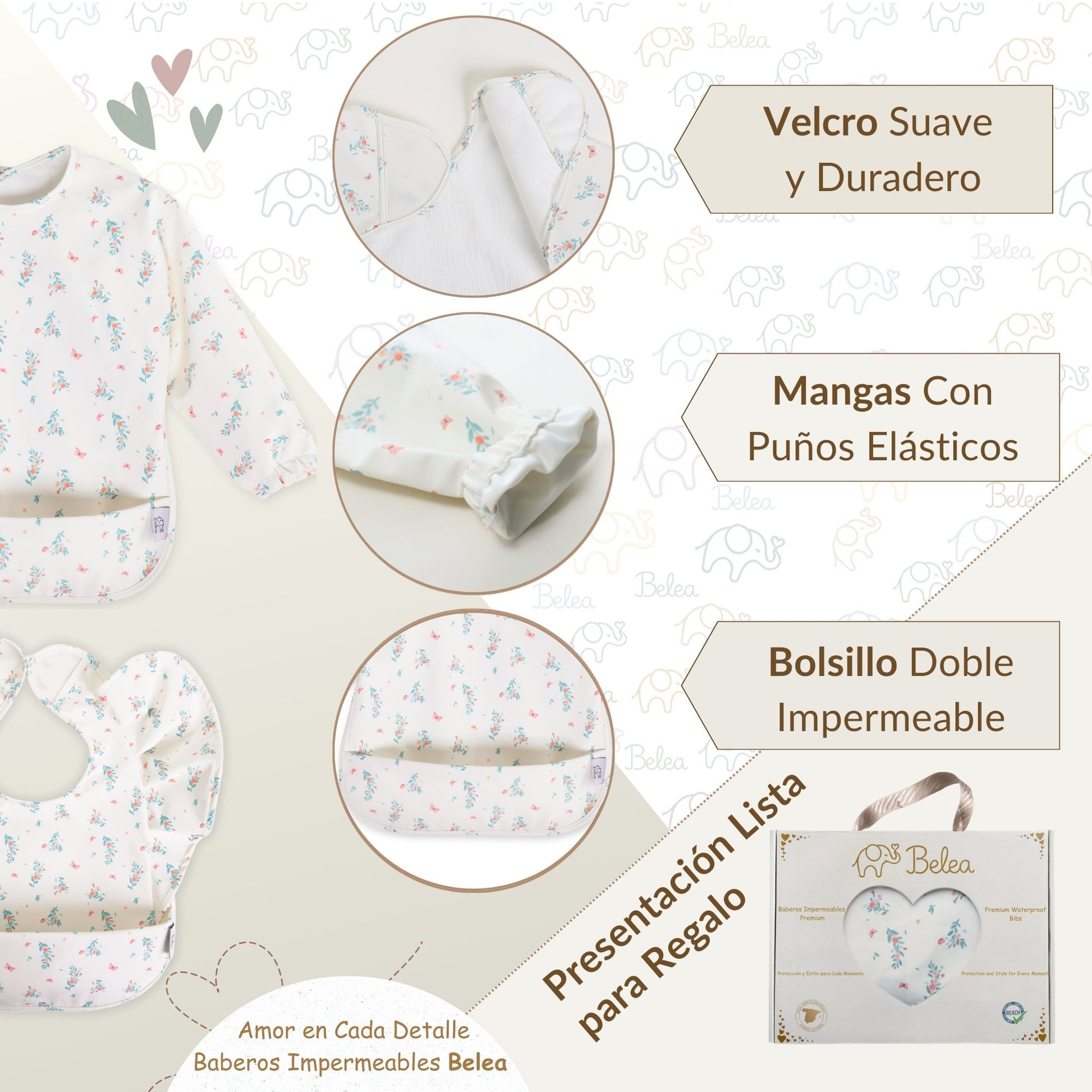 Pack Babero Manga Larga + Babero con Volantes – Flores | BeleaKids