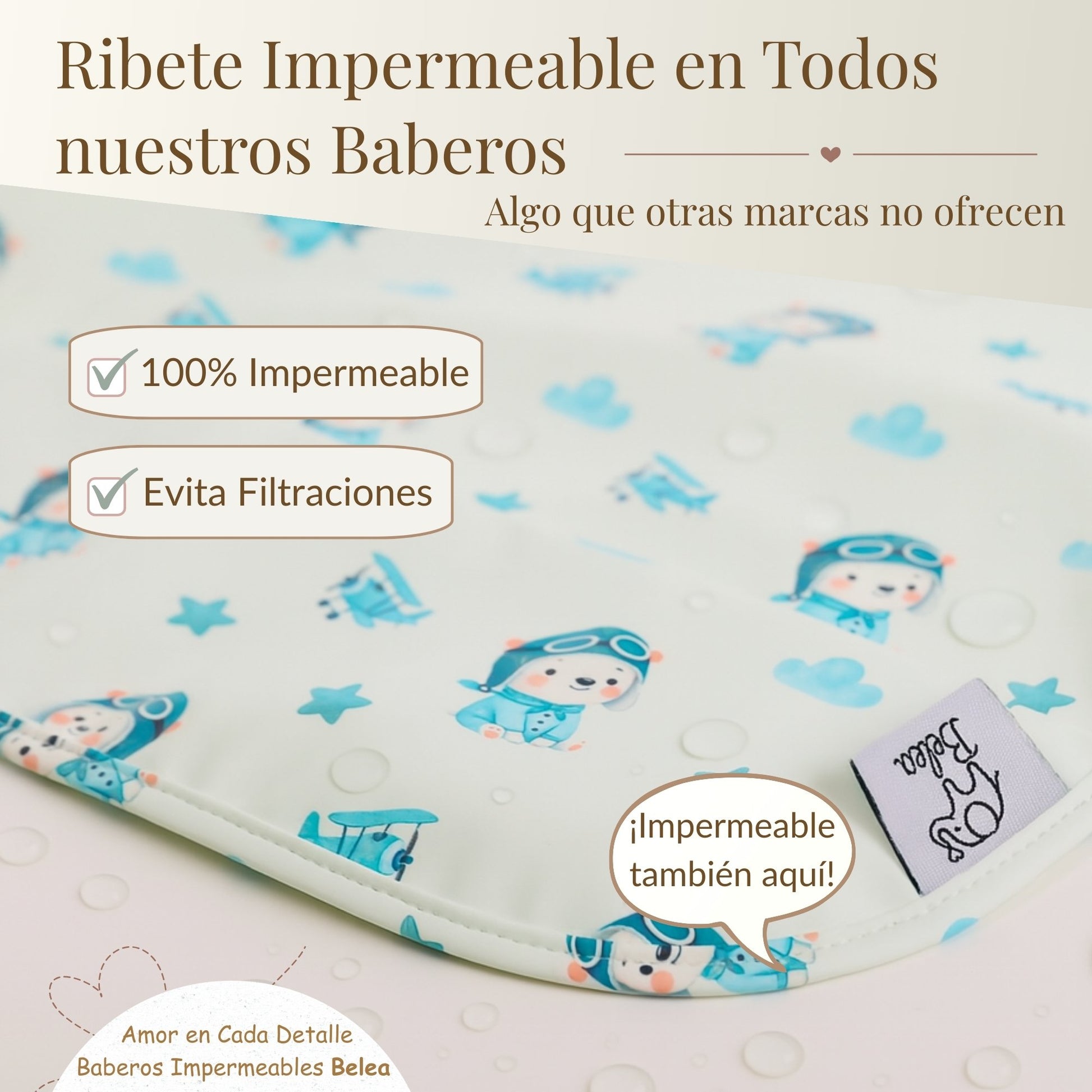 Nuestros Baberos Impermables están diseñados para adaptarse a cualquier momento del día. Ya sea durante las comidas en casa o al aire libre, o en actividades creativas, estos baberos mantienen la ropa de tu bebé impecable. Perfectos para el método BLW (Baby Led Weaning).La calidad del material garantiza la resistencia al uso diario sin deteriorarse.