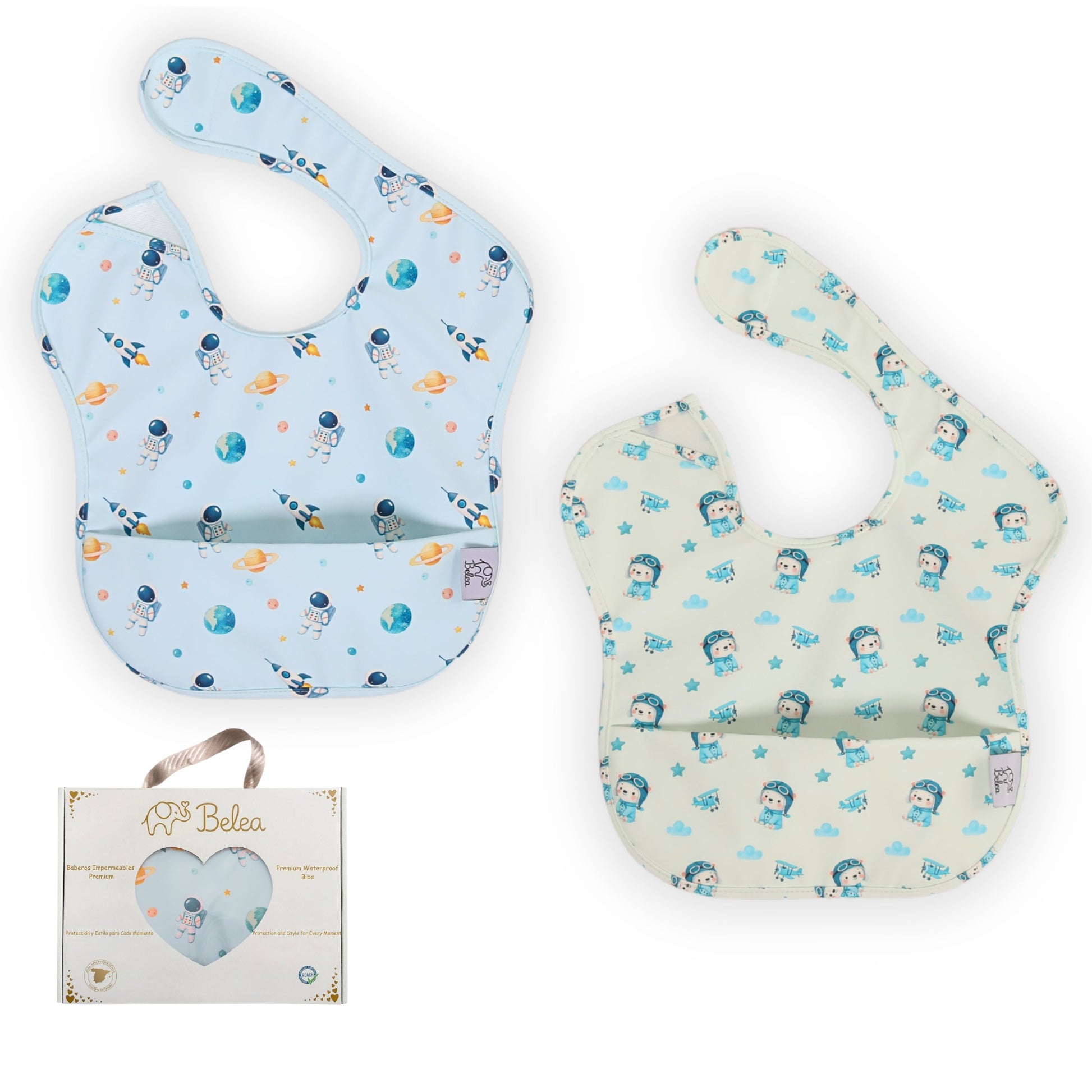 Pack Babero Manga Larga + Babero sin Mangas – Astronauta | BeleaKids